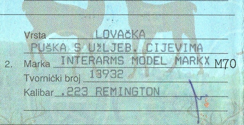 Kad to već spominješ, ja san imao i obrnutu situaciju. Referentica je nekada prije oružara za Zastavin karabin Mod. 85, ali onaj za izvoz, u OL upisala: Interarms Model MARK X i tako je stalo godinama.jolly wrote: ... EVentualni nedostatak znanja kod nekih referenata nastoji se danas korigirati pregledom puske pri registraciji kod mupovog oruzara.