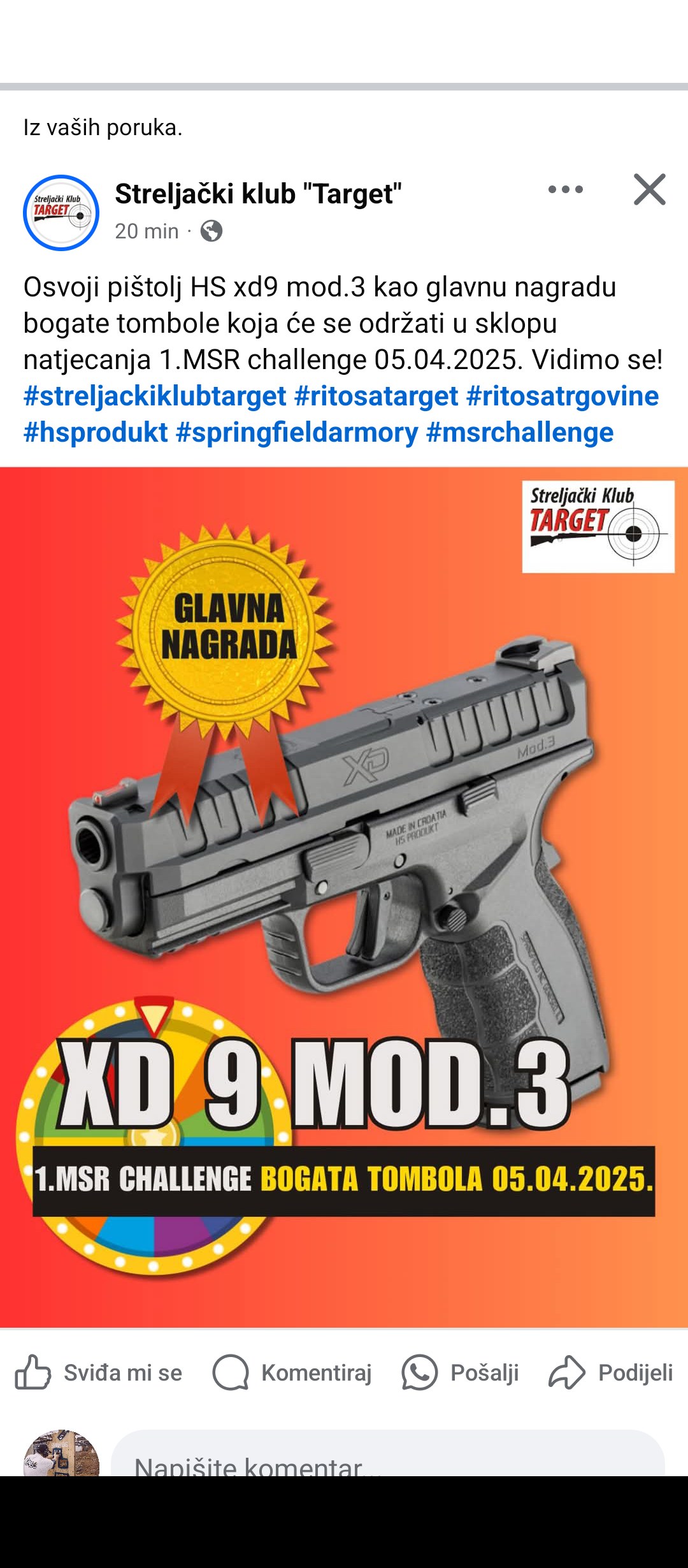 Kolege iz SK Target organiziraju 1. MSR Style Challenge sa poluautomatskim puškama, nije još navedeno nigdje ali načuo sam da će biti jaka tombola! Budu objavili uskoro na svojim facebook profilu i instagramu.