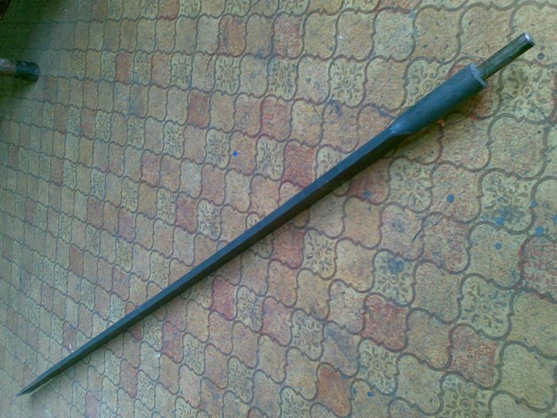 to je stiglo od Westinghausa ,nabavio sam dva komada,manji i veči, od manjega je bilo taman za oštricu a dio koji ide u čekič je imao oblik drške pa sam samo dodao prstene od kože i kapicu od mesinga.Od večega je ostala "drška" ali nema dosta za sječivo,staviti ču slike da vidiš kako to izgleda