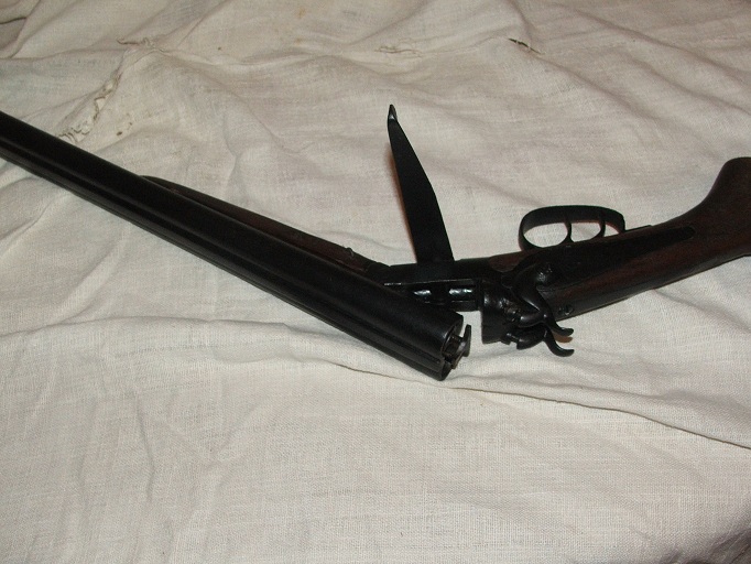 Podsjeća na Larsen Liege ako je u kalibru 16. Drotane cijevi...crni barut....nije za kugle. Starost ...cca 1880 godina. Vrijednost 150-500 Eur