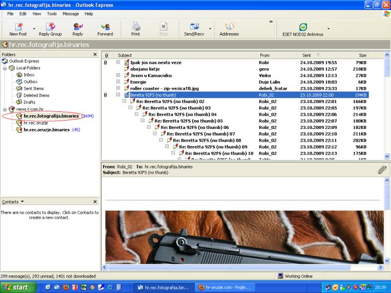 stavim nekidan slike ove moje kopije berette koju sam i tu stavljao pod plinsko oruzje i u galeriju, - na hr.rec.fotografija. binaries - kamo sam i do sad znao stavljat tu i tamo koju sličicu da dobijem koji komentar slika (koje sam uzgred budi receno poškljocao onako usput na običnom prozorskom svjetlu iz ruke bez tronošca -ionako sam potrošio previše vremena) i dobijem gomilu komentara samo na temu oružja a ništa na slike... kao da sam poremećeni psiho jer sam slikao pištolj umjesto cvjetića ili bubamare... ma baš sam debil! oružje treba držat u ovoj grupi jer čim ga izneseš negdje "van" gledaju te ko serijskog ubicu... ljudi ne mogu shvatit nečiju ljubav (da ne kažem opsesiju:-) oružjem, priznajem da to zna zvučat ili izgledat sa strane čak bolesnim onom ko to ne shvaća, (ne kažem da nema i poremećenih ljubitelja oružja) ali... iz sopstvenog primjera znam da tu nema ničeg lošeg - svakoj budali njezino veselje, ne!! moraš se nečim bavit i zabavljat.. pa ne mogu svi skupljat samo salvete, marke i značke (nemam ništa protiv istih i sam sam nekad skupljao značke!!) :A13: