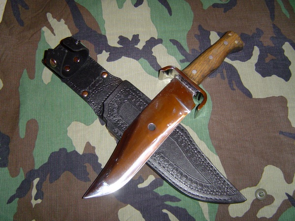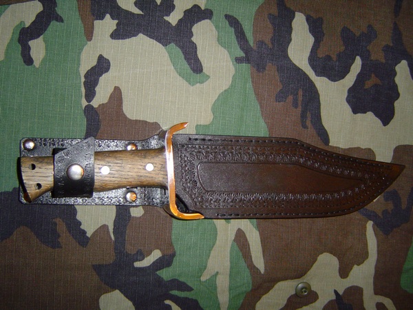 Drska od oraha zasticena lanenim uljem,futrola od kvalitetne biljno stavljene koze 4,5mm debljine impregnirana pcelinjim voskom i balistol uljem.