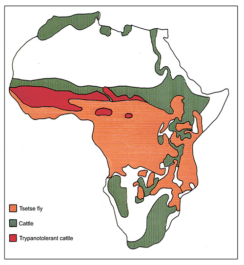 Naime, tamo gdje tse tse muha caruje, to zaustavlja ruralni razvoj stocarstva jer je za domacu stoku pogibeljna, pa samim time zaustavlja razvoj stocarstva a ostavlja stanista divljaci jos uvijek relativno nedirnuta. (ali doduse i otvorena za krivolov). S druge stane, u vise milijuna godina domicilna divljac razvila je i odredjenu otpornost na ovu muhu.