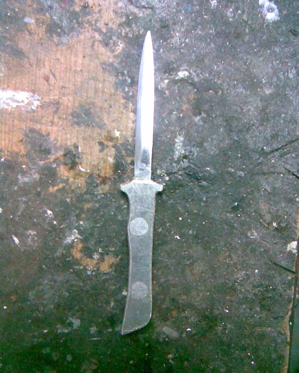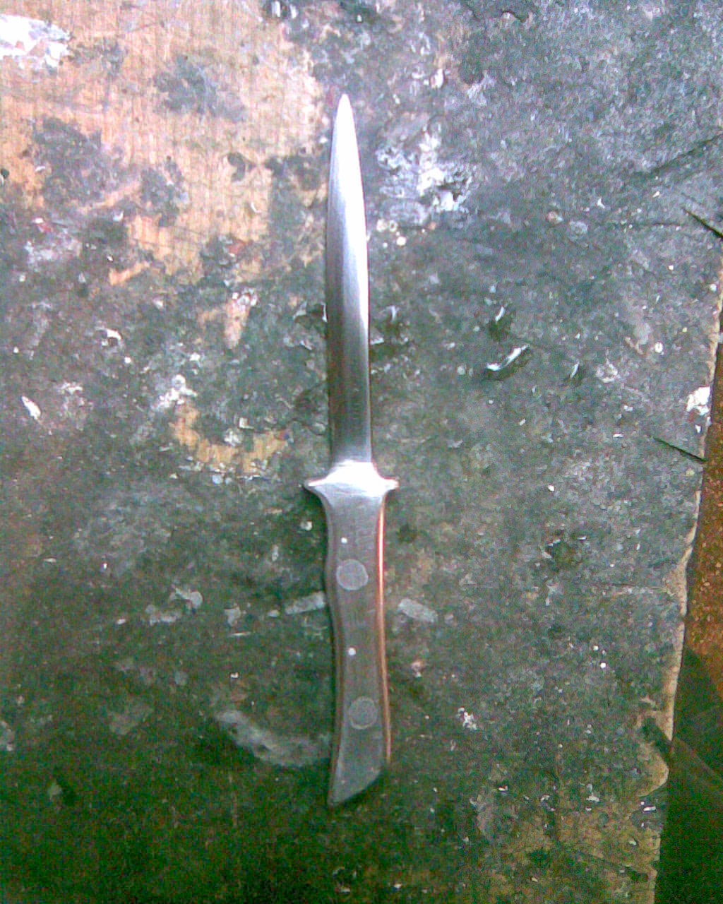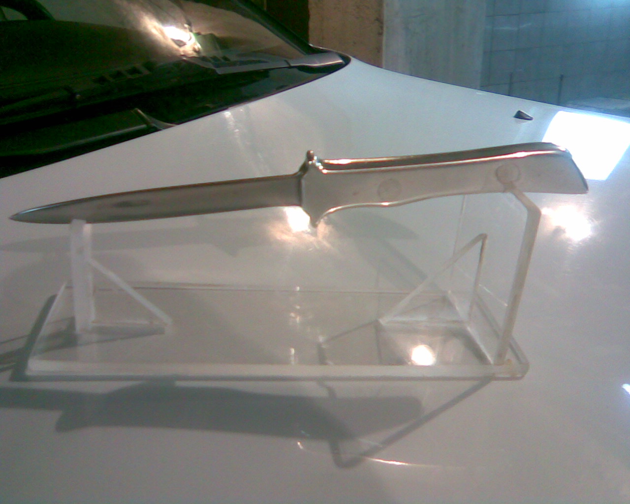 Oštrenje će biti mukotrpno jer ručno vodobrusnim papiro skoro da se i neskida ovaj materijal. Zanimljivo je da kada se turpijom pređe preko ovog materijala ona samo dskače i nemože napraviti nikakav ris ni parnicu. Dužina oštrice je 105mm.