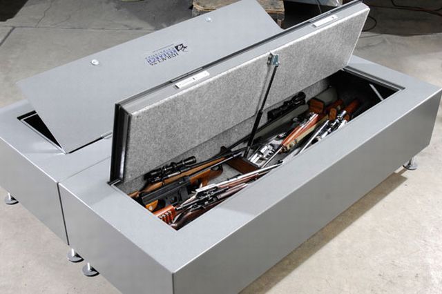 jest da ovi sanduci kad su zatvoreni izgledaju ko mrtvački, možda na kraju za to i posluže, ali svaka čast i ja bi ih rado imao čak malo prostora zauzimaju. nego zamisli policiju kad ti dođu u kontrolu oružja i kad vide gdje držiš puške, mislim da, bez obzira na težinu i propis te fiksiranje istih "ležečih" ormara, bi te otpeljali u stanicu i sve zapljenili. nigdje u zakonu ne piše da ormar za oružje mora stajati uspravno, zašto ne bi mogao ležati naravno kad je fiksiran po propisu, za razmislit je