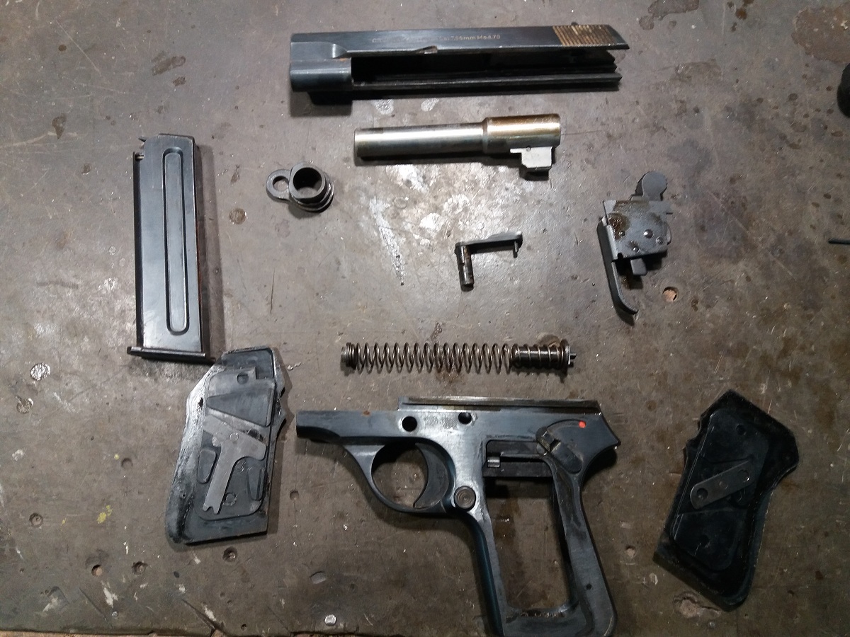 Zašto oružje jednostavno ne pretvorit u plinsko. Izbuše se navoji iz cijevi i u cijev se zavari nekakva šipka koje spriječava stavljanje projektila i stavi se slabija povratna opruga i oružje se registrira kao plinsko. Naša san ujčev Walther pp na selu. Naravno onesposobljen. Ima gravure i ja mislim mesingani čekić, botun za otpuštanje spremnika, kočnicu i ručke koje imaju kao nekakav oslonac za palac baš lipo leži u ruci, šteta šta je danas samo uteg za papir.