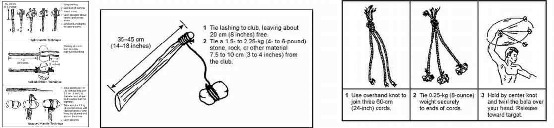 Takodjer se moze ucvrstiti na stap pa se koristi kao klasicna pila kada se pila ne koristi moze se smotati i transportirati u loncu za kuhanje VODA dobijanje vode iz biljaka HRANA